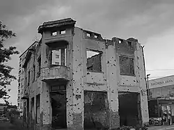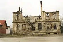![]() Castelul de apă din Vukovar, 2005. Puternic deteriorat în timpul luptelor, castelul a fost păstrat ca simbol al conflictului. | ||||||||