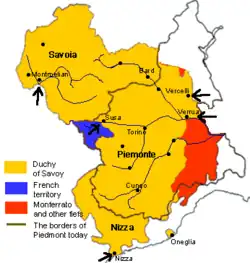 Milano care se afla în mâinile Spaniei și constituia un coridor de legătură natural între cei doi aliați[4], deci Ludovic al XIV-lea aproape i-a impus Ducelui de Savoia alianța cu franco-spaniolii din motive strategice. Ducele de Savoia, susținut de verișorul său Eugen de Savoia, conte de Soisson și mare conducător al trupelor imperiale, a intuit că de data aceasta partida principală dintre Franța și Imperiul Habsburgic se va juca în Italia, nu în Flandra sau Lorena. Convins de acest fapt s-a aliat cu Imperiul Habsburgic, singurul care în caz de victorie putea garanta independența statului de Savoia. A fost o alegere abilă, inteligentă, dar și riscantă deoarece în cazul unei înfrângeri, Savoia și Piemont ar fi fost distruse și anihilate[5]. Alegerea ducelui de Savoia în toamna anului 1703 (Tratatul de la Torino (1703)) poartă la începerea acțiunilor belice ale lui Ludovic al XIV-lea, întâi în Savoia apoi în Piemont.