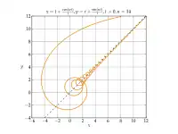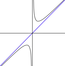 Pe graficul lui , axa y (x = 0) și dreapta y = x sunt ambele asimptote.