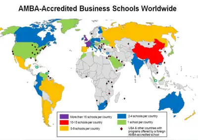AMBA a fost fondată în 1967[3] și până în prezent a acreditat programe de la 189 de școli de afaceri în peste 70 de țări.[4]