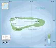 Atolul constă dintr-un inel de patru insule mai mari (de ceasornic), incluzând South Island (Grand Terre, 116,1km²), Malabar sau Oriental Island (26,8km), Polymnieli sau Polymnie (4,75km²) și Picard sau Vest Island (9,4km²)