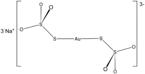 Aurotiosulfatul de sodiu este un compus anorganic derivat de aur, fiind utilizat ca medicament antireumatic, în tratamentul artritei reumatoide.[3][4][5] Calea de administrare disponibilă este cea intramusculară.