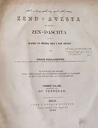 Învățăturile din Avesta s-au transmis oral și au fost strânse și consemnate în scris pe vremea Sasanizilor (sec. III d.Hr.). Scrierea e cunoscută și sub numele de Zend-Avesta („Avesta și Comentar“), formată din 4 părți. Primele trei părți, care formează „Marea-Avesta“, cuprind texte liturgice, iar partea a patra, „Mica-Avesta“, cuprinde scurte texte religioase, un calendar, formule de rugăciuni ș.a. Redactarea Avestei s-a făcut în limba pehlevi, persana medie, adică limba iraniană din vremea Sasanizilor.[2]