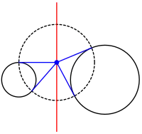 Axa radicală a două cercuri este locul geometric al punctelor care au puteri egale față de cele două cercuri. Se poate demonstra ca aceasta este o dreaptă (de unde și denumirea) și că, mai mult, toate punctele acestei drepte admit tangente egale față de cele două cercuri.