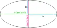 Lungimea axei mici este notată, în mod curent, cu , iar aceea a semiaxei mici cu .