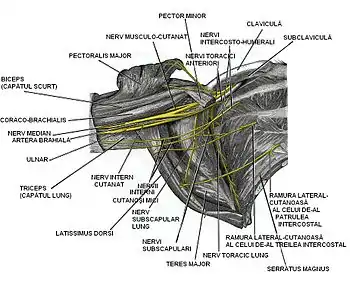 Plexul brachial dreapta şi zona fosei axiale, imagine după Gray's Anatomy
