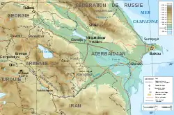 audio), oficial Republica Azerbaidjan (în azeră Azərbaycan Respublikası),[5] este cea mai mare țară din Caucaz, situată între Asia și Europa.[6] Cuvântul „Azerbaidjan” înseamnă „Țara Focurilor” în limba veche. Vecinii Azerbaidjanului sunt Rusia (mai precis Republica Daghestan) la nord, Iranul la sud, Georgia, Armenia și Turcia la vest. La est este Marea Caspică. Pe litoralul Mării Caspice se află capitala Baku. Poporul azer face parte din familia națiunilor turcice. Majoritatea populației este de religie musulmană. Azerbaidjanul, o națiune în care majoritatea populației este formată din musulmani, este o republică laică și unitară. Azerbaidjan a fost prima încercare reușită de a stabili o republică democratică și seculară în lumea musulmană. Azerbaidjanul este unul dintre membrii fondatori ai GUAM, precum și ai Organizației pentru Interzicerea Armelor Chimice, iar în septembrie 1993 a aderat la Comunitatea Statelor Independente.