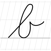Litera Bb scrisă cu fontul „School Script Dashed”.