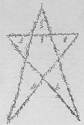 O rugăciune scrisă de Siyyid Ali-Muhammad-i-Shirazi, sau Báb, în formă de pentagon stelat.