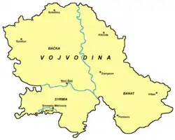 Hartă care arată orașele și orașele din partea sârbă a Bačka.