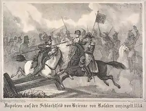 ![]() Ilustrare a momentului în care Împăratul aproape a fost capturat de cazaci. | |||||||