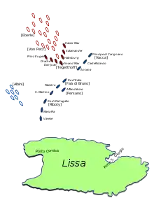 ![]() Bătălia de la Lissa de Carl Frederik Sørensen, 1868. | |||||||
