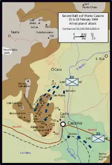 Planul lui Freyberg era o continuare a primei bătălii: un atac dinspre nord de-a lungul crestelor muntoase și un atac dinspre sud-est de-a lungul căii ferate și capturarea gării de dincolo de Rapido aflată la un kilometru sud de orașul Cassino. Succesul ar fi dus la cucerirea orașului Cassino și la deschiderea văii Liri. Freyberg își informase însă superiorii privind opinia sa că, date fiind circumstanțele, șansele de succes ale ofensivei sunt mai mici de 50%.[25]