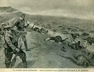 ![]() Atacul japonez împotriva liniei de apărare a rușilor în anul 1904 în cadrul Bătăliei de la Nanshan | |||||||