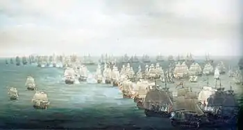 | 27 de nave de linie 4 fregate 1 goeletă 18500 de oameni | 33 nave de linie 5 fregate 2 bricuri 26000 de oameni | ||||||