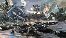 ![]() Soldați germani fugind din fața trupelor belgiene în Bătălia de pe Yser. | |||||||||