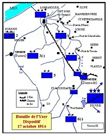 Bătălia de pe Yser (în franceză Bataille de l'Yser, în neerlandeză Slag om de IJzer) a fost o bătălie a Primului Război Mondial care a avut loc în octombrie 1914 pe un teritoriu aflat între orașele Nieuwpoort și Diksmuide, de-a lungul unei fâșii lungi de 35 km a râului Yser și a canalului Yperlee din Belgia.[3] Linia frontului a fost păstrată de o mare armată belgiană care a oprit înaintarea germană într-o bătălie defensivă costisitoare. Victoria aliaților pe Yser a oprit înaintarea germană în ultimul colț neocupat al Belgiei, dar a lăsat totuși armata germană în stăpânirea a aproximativ 95% din teritoriul belgian.