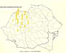 Prezența greco-catolică conform recensământului din 1930, înainte de desființarea Bisericii Române Unite cu Roma