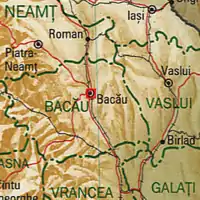 Bacău (Despre acest sunet pronunție , în maghiară Bákó, supranumit și „orașul lui Bacovia”[3]) este municipiul de reședință al județului cu același nume, Moldova, România. Este situat pe râul Bistrița, pe care în oraș există două centrale hidroelectrice (Bacău I și Bacău II) ce acoperă o parte a consumului local de energie electrică.[4] Suprafața municipiului este de 43 km², iar populația este de 144.307 de locuitori (2011). Orașul este traversat de drumurile europene E85 și E574 ce fac legătura cu Bucureștiul, cu nordul țării și cu Transilvania. Pe calea feroviară legăturile naționale și internaționale se realizează prin rețeaua CFR. Bacăul dispune de un aeroport internațional ce asigură curse regulate către diferite destinații naționale și europene.