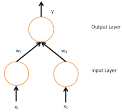 Pentru a înțelege calculul matematic al algoritmului de backpropagation, este nevoie mai întâi de dezvoltarea unei intuiții despre relația dintre produsul real al unui neuron și rezultatul corect pentru un anumit exemplu de antrenament. Fie o rețea neurală simplă cu două unități de intrare, o unitate de ieșire și fără unități ascunse și în care fiecare neuron utilizează o ieșire liniară (spre deosebire de majoritatea lucrărilor pe rețelele neurale, în care maparea de la intrări la ieșiri este neliniară)[lower-alpha 6] care este suma ponderată a intrărilor sale.