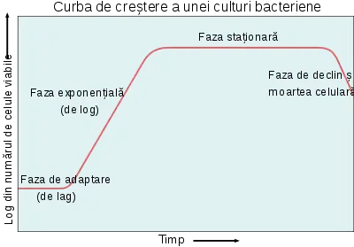 Spre deosebire de organismele pluricelulare, pentru organismele unicelulare creșterea în dimensiune a celulei și reproducerea prin diviziune celulară sunt procese strâns legate. Bacteriile cresc până la o anumită dimensiune, iar apoi se reproduc prin fisiune binară sau diviziune simplă, care este o formă de reproducere asexuată.[133] În condiții potrivite, o bacterie Gram-pozitivă se poate divide odată la fiecare 20-30 de minute, iar o bacterie Gram-negativă odată la 15-20 de minute, iar după aproximativ 16 ore numărul de celule al unei colonii care a proliferat dintr-o singură celulă poate atinge 5.000 de milioane. În condiții optime de viață, bacteriile sunt organisme care cresc și se divid extrem de rapid, astfel că fiecare populație bacteriană se poate dubla, pentru anumite specii, chiar și într-un timp de 9,8 minute.[134]