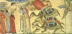 Mahomed se întâlneşte cu călugărul Bahira. Din Jami' al-Tawarikh ("Istoria Universală") cca. 1315.