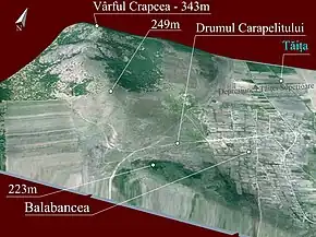 Comuna Balabancea ocupă toată valea superioară a rîului Taița, e așezată la 29 km spre sud-est de Măcin și la 22 km spre sud de orașul Isaccea. Se compune din următoarele cătune: Balabancea (corupție din Balaban-kioi = satul lui Balaban), sat locuit numai de turci prin 1850, acum au emigrat în mare parte, e așezat pe malul drept al Taiței, la poalele dealului Carapcea, e satul de reședință; Giaferca Rusă (Giafer, nume propriu) pe valea Holuclu, la 6 km spre nord de Balabancea, a fost fondată de ruși în urma războiului din Crimeea; Hamcearca, fostă mănăstire rusească așezată pe dreapta Taiței la 5 km spre nord de Balabancea; Islam-Giaferca sau Giaferca-Turcească pe valea Coșlugea la 3 km spre est de Balabancea, a fost odinioară locuit de turci, emigrați acum cu toți; Taița, locuită multă vreme de ruși, până la răsboiul din 1877, e așezată pe valea Țiganca în munți; astăzi cătunul este nelocuit și face parte din cătunul mărginaș numit Țiganca; este la depărtare de 9 km spre nord de Balabancea. Țiganca pe rîul Taița la 8 km spre nord de Balabancea, a fost locuită de ruși prin 1850. Tot de această comună mai țin: mănăstirea Taița la 1 1/2 spre nord de Țiganca, în sus pe cursul Taiței, a fost mănăstire românească prin 1850, acum nu mai are călugări, ci în ea deservesce preotul din Hamcearca și vin locuitorii din Țiganca. Nu se scrie de cine și cînd s-a fondat această mănăstire; moara mănăstirii Cocoșul, așezată pe valea Pîrlita la 2 km spre răsărit de Țiganca peste dealuri, aparține Mănăstirei Cocoșul, e la 6 km. spre sud de Mănăstire; crucea lui Jon Agian, o locuință isolată pe dealul Daiaman-Bair. Posițiunea comunii Balabancea este pitorescă și higienică, aerul curat; munții, care o înconjoară acoperiți de păduri bătrîne de tei, îi îndulcesc clima atât vara cât și iarna. Hotarul amănunțit al comunii: plecând din vârful dealului Breazu, deasupra mănăstirei Cocoșul, se îndreaptă către nord vest, trece prin apropierea mănăstirei, pe la poalele dealului Cocoșul, pe muchia dealului Cadiul, până în vârful dealului Gâlmele - înșirate; în tot acest parcurs a străbătut de-a lungul pădurea Taiței. De la Gâlmele - înșirate se îndreaptă spre către vest, coboară în valea rîului Luncavița, pe care o însoțeste până la confluența sa cu Luncăvicioara, la locul numit podul lui Trandafir; se îndreaptă putin către sud vest și urcă în vârful dealului Gogoncei; de aici, aproape în linie dreaptă se dirige către sud vest, taie valea Luncăvicioara, trece peste dealul Ferului, prin valea Lupului, pe la poalele dealului Ștubeilor și urcă în dealul Negoiu a cărui muchie o urmează până în vârful Almalia; de aici urmând aceiași direcțiune cu oarecare 8 Ionescu 1904, 382-383. www.cimec.ro Pietrele funerare din Balabancea 277 cotitură, pe muchiile dealurilor David și Amzalăi, pe la poalele dealului Carapcea ajunge în râul Taița la 2 km mai jos de satul Balabancea. De aici urcă puțin spre nord pe lângă râul Taița, până aproape de satul Balabancea, se îndreaptă către est până la poalele dealului Boclugea, deasupra comunei Ortakioi, de unde apoi se îndreaptă către nord pe muchia dealului Boclogea, până la valul lui Traian, pe care îl urmează. Urcă apoi dealul Pârlita, coboară în valea Pârlita, la Moara Mănăstirei Cocoșul: de aici se îndreaptă către nord est urcând în susul văii Pârlita, până în dealul Breazul deasupra viilor Bădila. Forma perimetrului comunii este aceia a unui exagon și un pentagon împreunate pe una din laturi; lungimea perimetrului este de aproape 110 km, iar suprafața de peste 75 km pătrați, adică 7.544 hectare. Marginele comunii sunt: la nord Isaccea, de care se desparte prin dealurile Breazu, Cadiul și pădurea Taița; comuna Luncavița, de care se desparte prin valea Luncaviței și dealul Gogoncea; la sud comuna Ortakioi; la est comunele Ali-bei-kioi, despărțită prin dealul Boclogea; Meidanchioi de care se desparte prin valul lui Traian și cu comuna Nicolițel, de care se desparte prin valea Pârlita și dealul Breazu; la vest cu comunele Greci, despărțită prin dealul Negoiu; cu Cerna despărțită prin dealul lui David și Amzalăi; cu cătunul Ac-punar (al comunii Cârjelari), de care se desparte prin dealurile Amzalăi și Carapcea. Repartiția suprafeții si populatiei este arătată la plasă. Case sunt 291, bordeie 23, cârciumi 5, mori 2, fontâni 39. Bugetul comunii este de 6.278 lei la venituri și 5.497 lei la cheltuieli, cu un excedent mediu (pe cinci ani) de 3.908. Contribuabili sunt 268. În toată comuna sunt două școli mixte, în Balabancea si Islam-Giaferca înființate de județ în 1891 si 1897, nu au local propriu; au ca venit în fiecare cătun câte 10 hectare pământ; au doi învățători și 80 de elevi. Primăria nu are un local propriu. Cultul religios este representat de 4 biserici creștine și giamie. O biserică este în cătunul Balabancea instalată într-o casă cerchezească, în urma războiului din 1877-1878, are hramul Sf. Apostoli Petru si Pavel. În 1897 s-a construit biserică nouă, care a costat 12.000 lei; e deservită de un preot, care slujește și la cătunul Islam-Giaferca și un cântăreț; ca venit are 10 hectare de pământ; o a doua biserică e în cătunul Islam-Giaferca cu hramul Acoperământul Maicii Domnului, fondată în 1859 de o rusoaică din cătunul Giaferca-Rusă, are un cântâret; are 10 hectare de teren; o a treia în cătunul Hamcearca cu hramul Adormirea Maicii Domnului; la această biserică vin și locuitorii din cătunul Giaferca-Rusă care n-are biserică; este foarte veche, la început a fost mănăstire călugărească, fondată nu se știe de cine și când. Cătunul Țiganca nu are biserică; locuitorii din Țiganca se duc la Mănăstirea Taița, la care servește preotul din Hamcearca. 