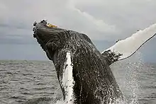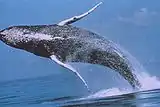 | Balenă cu cocoașă după efectuarea unei sărituri | |