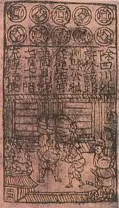 Moneda de hârtie a fost introdusă la începutul secolului al X-lea, de negustorii chinezi de ceai, care încheiau mari tranzacții cu bilete la ordin, cu scopul evitării transportului monedelor metalice. Administrația chineză a adoptat oficial bancnotele în 1024. Monedele metalice erau reprezentate simbolic pe bancnotele emise sub dinastia Song.