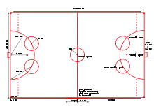 Terenul de gheață este de mărimea unui teren de fotbal, iar meciul este împărțit în două reprize a câte 45 de minute.