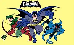 ![]() Poster promoțional cu Batman, Săgeată Verde și Cărăbușul Albastru | |