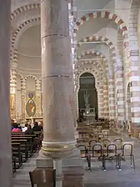 În interiorul bazilicii, pe pavimentul colonadei drepte (sudice) s-a păstrat un fragment de mozaic bizantin, care conține imagini geometrice. Acest fragment de mozaic este acoperit în prezent de covoare.