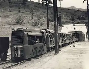 ![]() Ieșirea din una dintre minele complexului R.A.L. (Rafira, Asău, Lumina), Comănești. | |