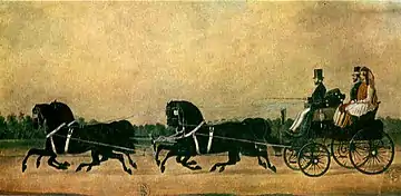 Beizadeaua Grigore Ghica, fiul voievodului Țării Românești Grigore al IV-lea Ghica, plimbându-se la Șosea, cu faetonul tras de patru telegari.