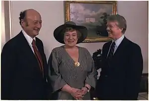 - Halloran, Richard (). „23 Leave Committee Over Abzug Dismissal; 23 on Carter's Committee Resign Over His Ouster of Mrs. Abzug; Questions His 'Rationality'; In Support of Carter; No Endorsement Now”. New York Times. Accesat în .