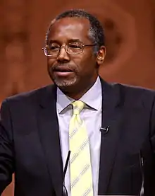 Benjamin Solomon "Ben" Carson Sr. (n. 18 septembrie 1951) este un renumit neurochirurg, actualmente retras din activitate, și scriitor, de asemenea. Lui i se aduc meritele primei operații reușite de separare a unor gemeni siamezi. În 2008 a primit Presidential Medal of Freedom(en)[traduceți] din partea președintelui de atunci, George W. Bush. După ce a susținut un discurs în anul 2013, în care își exprima viziunile politice și părerile asupra problemelor mondiale, a devenit o figură mediatică, apărând zvonuri cum că el ar fi reprezentatul Partidului Republican pentru alegerile prezidențiale din 2016.