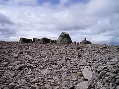 Vârful Ben Nevis constă dintr-un platou stâncos de aproximativ 40 ha.[20] Cel mai înalt punct este marcat cu o movilă de pietre în vârful căreia se află un punct de triangulare al Ordnance Survey.