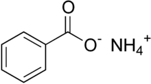 Benzoatul de amoniu este sarea amoniului cu acidului benzoic și are formula C6H5COONH4.[2] Masa sa moleculară este de 139,15 g/mol. Se prezintă sub formă de cristale. Pierde NH3 la aer; punct de topire 198°; e solubil în apă (1 : 4,7), în alcool (1 : 36). Se păstrează în vase închise ermetic. E folosit drept conservant de clei și de latex.
