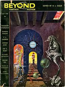 - Asimov's "Kid Stuff" and Dick's "The King of the Elves" appeared in the September 1953 issue: „"Kid Stuff" & "The King of the Elves"”. Beyond Fantasy Fiction. 1 (2): 121, 142. septembrie 1953. Bradbury's "The Watchful Poker Chip" appeared in the March 1954 issue: „The Watchful Poker Chip”. Beyond Fantasy Fiction. 1 (5): 128. martie 1953.. These and more may be found via an online index: „ISFDB: Beyond Fantasy Fiction”. Arhivat din original la . Accesat în .