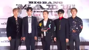 ![]() BIGBANG în 2016 la conferința de presă pentru albumul MADE De la stânga la dreapta: Seungri (fost membru), T.O.P, Taeyang, G-Dragon și Daesung | |