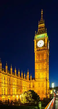 La Westminster s-a construit un turn cu ceas în 1288.[7][8] Turnul actual a fost înălțat ca parte din proiectul lui Charles Barry de construcție a unui nou palat, după ce vechiul Palat Westminster a fost distrus de incendiu în noaptea de 16 octombrie 1834.