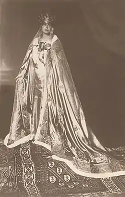 Regele Ferdinand I în veșmântul de încoronare complet.