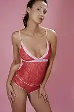 Este un model format din chilot de orice fel și un top ale cărui sfori de susținere se întâlnesc în zona cefei (eventual se încrucișează mai întâi pe piept). Acest model fusese deja remarcat în anii ’40, însă popularitatea sa s-a extins din nou mult mai târziu, odată cu apariția jucătoarei de volei Gabrielle Reece într-un costum sport, cu top croit pe modelul halter.