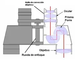 Prismele optice adăugate construcției reprezintă o altă modalitate de a transforma imaginea în mod corect, de obicei printr-o prismă Porro sau prismă roof.[5]