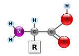 Proteinele sunt molecule macro-biopolimerice, adică sunt alcătuite din unități repetitive monomerice cunoscute pe larg sub denumirea de aminoacizi. Un aminoacid este alcătuit dintr-o catenă în care un atom de carbon are atașată o grupă amino, —NH2, catena se termină cu o grupă carboxil, —COOH (totuși trebuie menționat faptul că în condiții fiziologice, aminoacizii există sub formă de zwitterion, cu grupele de forma —NH3+ și —COO−), iar grupa R reprezintă orice grupare de atomi, putând fi chiar și un atom de hidrogen (în cazul glicocolului, cel mai simplu aminoacid). Catena laterală R diferă pentru fiecare aminoacid, astfel că există 20 de aminoacizi standard, iar aceasta este responsabilă și pentru proprietățile fiecărui aminoacid în parte. Fiecare catenă laterală are o influență deosebită asupra conformației tridimensionale finale a unei proteine. Unii aminoacizi au funcții separate, liberi sau în formă modificată; de exemplu glutamatul este un neurotransmițător important.