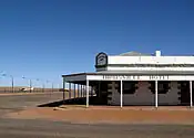 The Birdsville Hotel, adjacent to the apron of Birdsville Airport.
