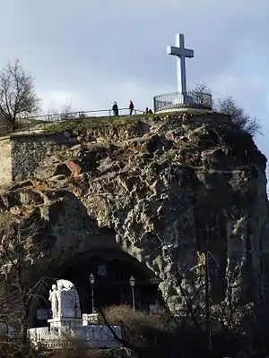Peștera care găzduiește biserica rupestră este compusă din două părți: cea superioară, numită inițial Szent Iván-barlang (Peștera Sfântul Ivan), mai târziu: Lourdes-i Barlang (Peștera din Lourdes), care este o peșteră naturală și cea inferioară, formată dintr-un sistem de incinte rezultate prin excavație. Temperatura în interiorul sistemului de peșteri este constantă, în tot timpul anului, de 21°C .