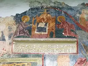 Continuarea tabloului votiv, cu Sf. Împărat Constantin în fața tronului Mântuitorului
