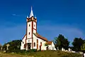În stânga imaginii Biserica „Sfântul Nicolae” și „Nașterea Maicii Domnului”. În dreapta imaginii „Biserica Adormirea Maicii Domnului”.
