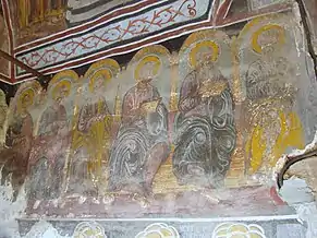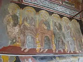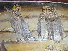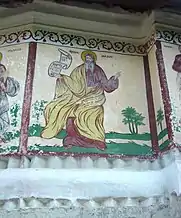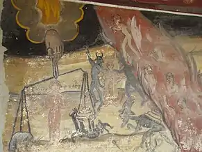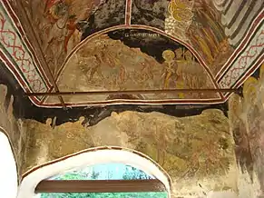 În friza picturii murale exterioare, pe latura de sud a bisericii, apar doi tineri bonjuriști: „d[omnul] Ioan Gărbea” și „d[omnul] Nicolae Gărbe, brat Ioan”. Aceștia par a fi fii ctitorului Nicolae Gârbea din Vladimirești, care s-au portretizat în chip de potecași, călare, fiind probabil, în tradiția locului, ctitorii acestei picturi.